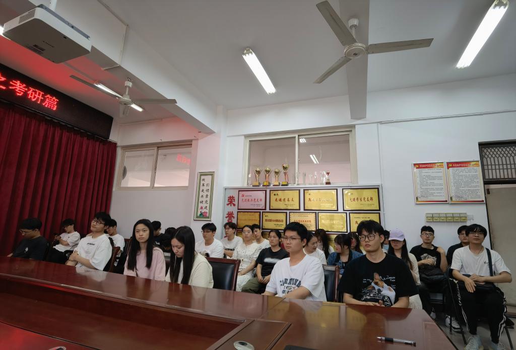 杨向宇根据2024届毕业生考研报录情况,直观地向大三学生分析了考研宏观形势,引导学生对考研及志愿报考进行理性思考。