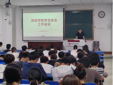 9月12日,在4号教学楼101教室召开数信学院学生安全、奖、助学金工作会议,数信学院党总支副书记杨向宇主持,学生工作办公室副主任陈婷、团委副书记张瑞楠以及全体2020级、2021级、2022级学生参加。