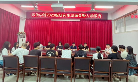 于2号实验楼数信学院会议室举行数信学院2023级研究生见面会暨入学教育。党总支书记李建伟,院长宋长明,党总支副书记杨向宇,副院长张建林,教学秘书高冉,辅导员张瑞楠出席会议,会议由党总支副书记杨向宇主持。