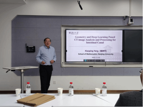 首场报告中,杨孝平围绕基于几何信息与深度学习的肠道中心线提取算法展开讲解,介绍如何利用持续同调判别肠道拓扑变异,并进一步阐述构建融入持续同调的深度网络,以促进影像分割过程中肠道拓扑结构保持的相关研究。