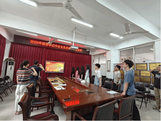 在会议室开展毕业生党员离校教育活动。院党总支副书记杨向宇、本科生党支部书记陈婷、研究生党支部书记张瑞楠及全体毕业生党员参加活动。会议由张瑞楠主持。