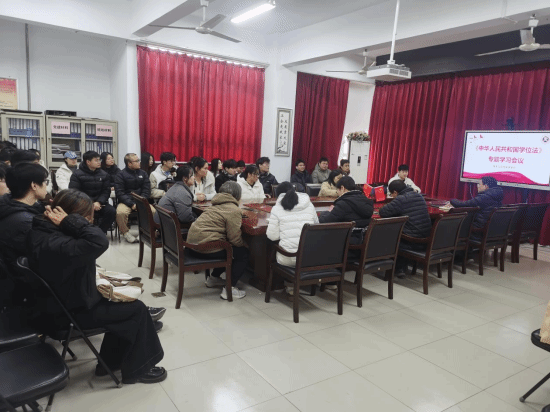 于1月9日召开《中华人民共和国学位法》专题学习会议,学院副院长张建林、学术副院长陈静,全体导师及研究生参加此次会议,会议由党总支副书记杨向宇主持。