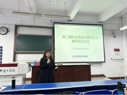 陈婷详细介绍了第二届大学生职业规划大赛相关工作安排,从赛事背景、目的意义、评分标准、参赛要求、生涯规划书及PPT撰写技巧等方面进行详细讲解。同时,她鼓励同学们积极参加比赛,明确职业目标,进行自我探索,做好生涯规划,提升个人综合能力,达到高质量就业的远景目的。希望现场参与的同学能够以这次比赛为契机,积极主动地开展职业生涯规划,朝着自己的人生目标,努力前行。