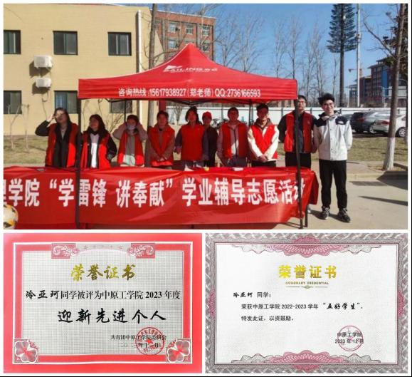 他时刻督促自己,检查自己,始终保持党员的先进性。积极参加学院组织的学业辅导系列志愿服务,将自己的所学所识奉献在志愿服务过程中,更好的用思想引领个人前行。荣获“校级五好学生”、“校级迎新先进个人”等荣誉称号。