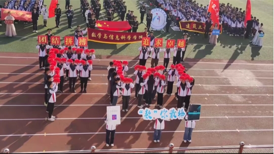 伴随着秋日的和风,沐浴着温暖的阳光,第36届秋季运动会在各学院整齐划一的方阵表演中拉开了序幕。数信学院方队精神饱满,手举小红花,迈着的步伐走到主席台时摆成了F[X]的造型,激情昂扬地喊出了“微分天下,人生几何;科学之本,唯我数学。”的响亮口号。接着,方队又迅速变换成了数学符号Π,“青春飞扬,梦想启航;中工数信,激流勇进“,嘹亮的口号充分彰显了 动漫色情 同学积极向上、昂扬奋发的精神风貌。