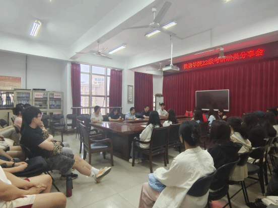 于5月12日举办考研动员分享会。学院党总支副书记杨向宇、辅导员张瑞楠及2021级考研优秀学生代表参会。