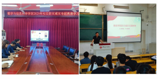 学院党总支组织全体教师开展校园防灾减灾专题教育,观看防灾减灾视频,提升教师在突发事件中的组织协调能力,保障学生安全。学院党总支副书记杨向宇、学工办主任陈婷以“人人讲安全、个个会应急”为主题,结合地震、火灾等常见灾害的真实案例,详细讲解了防灾减灾预防与应对措施,提升学生安全防范意识与应急避险能力。